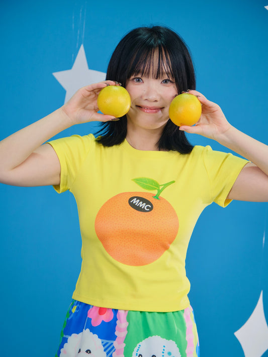 MeowMeow Bug - Decora Kei Orange Print Slim Fit T-Shirt