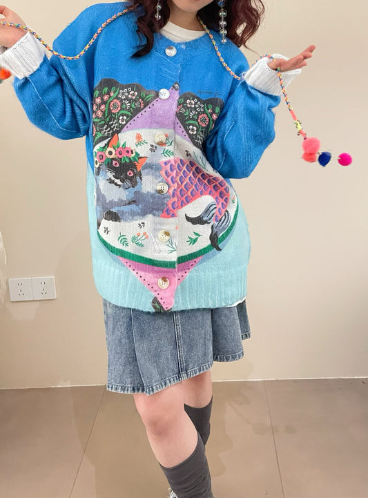 MeowMeow Bug - Kawaii Mermaid Cat Plush Cardigan Sweater