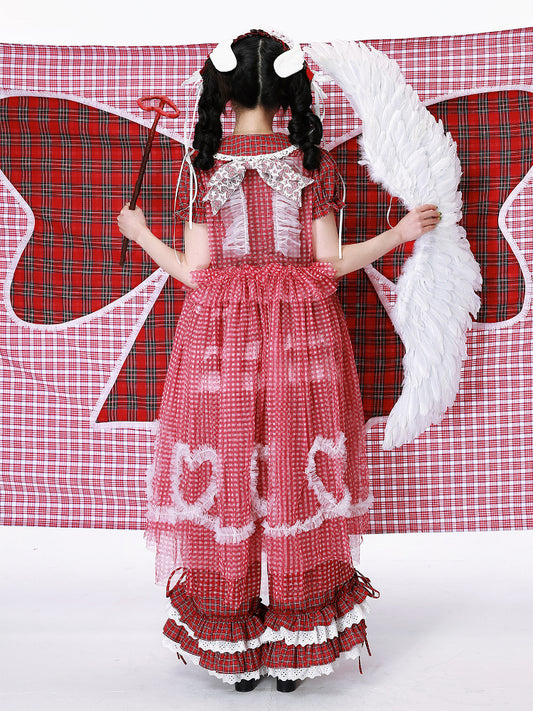 SOS MEME CLUB - Showa Red Plaid Short Sleeve Dress