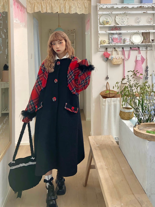 Disorder - Kawaii Black Plaid Wool Blend Mid Coat