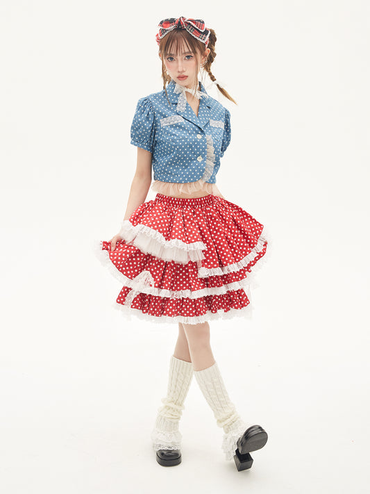 SOS MEME CLUB – Showa Retro Red Polka Dot Layered Cake Skirt