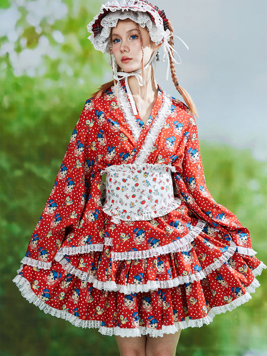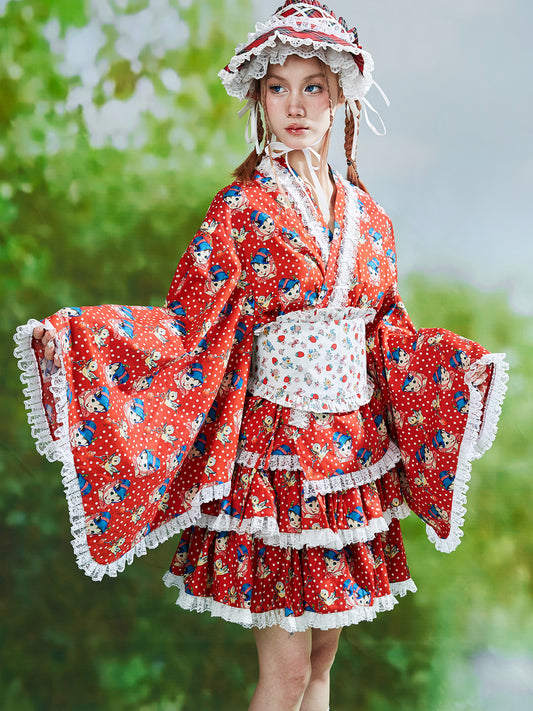 SOS MEME CLUB - Retro Showa Red Kimono Yukata
