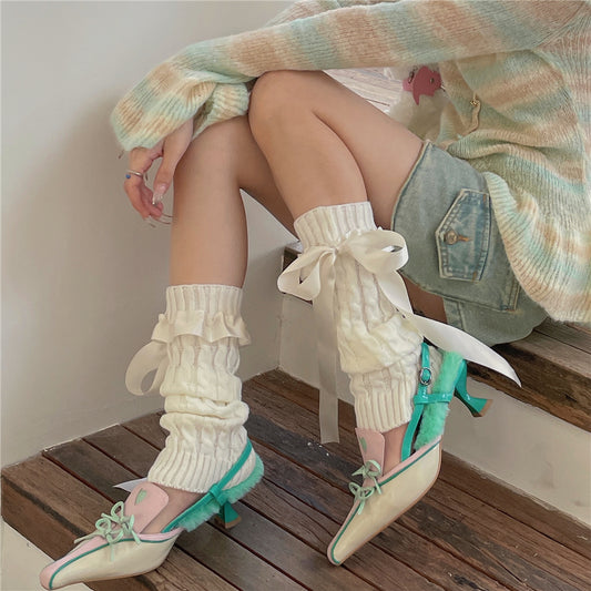 LET ME SEE - Kawaii Satin Ribbon Bow Leg Warmers