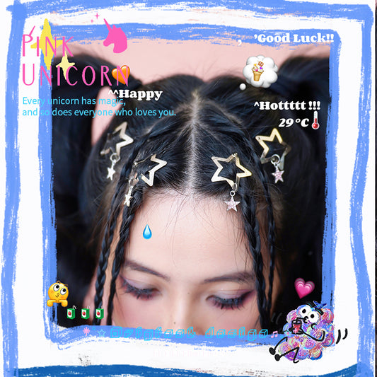 Pink Unicorn - Y2K Metal Star Hair Clip Silver Zircon Minimalist