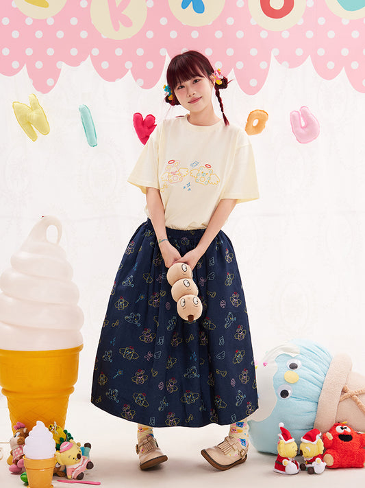 NIKKOU Cute Japanese Style A-Line Skirt | Harajuku Animal Angel Embroidered Denim Skirt