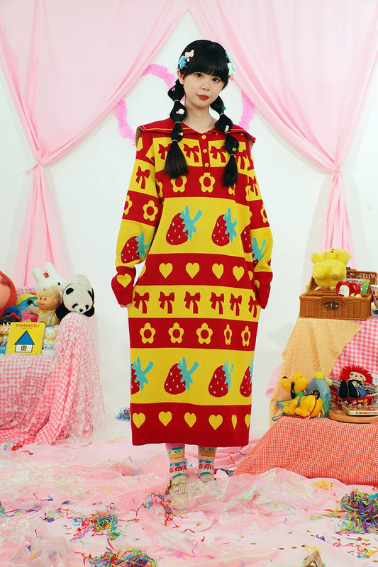 Harajuku Sweater Dress Strawberry Sweater Dress Decora Fashion Dress