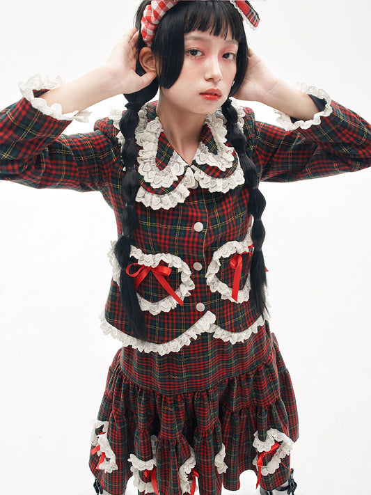 SOS MEME CLUB – Showa Christmas Red Plaid Wool Coat