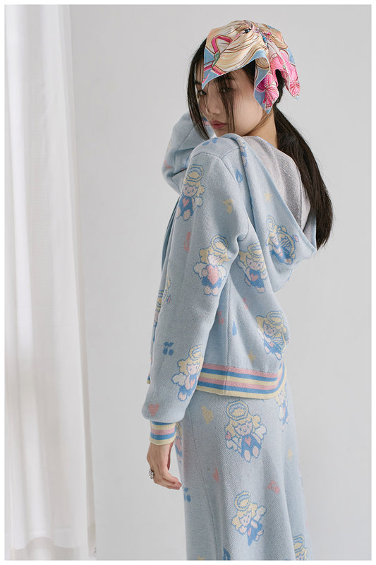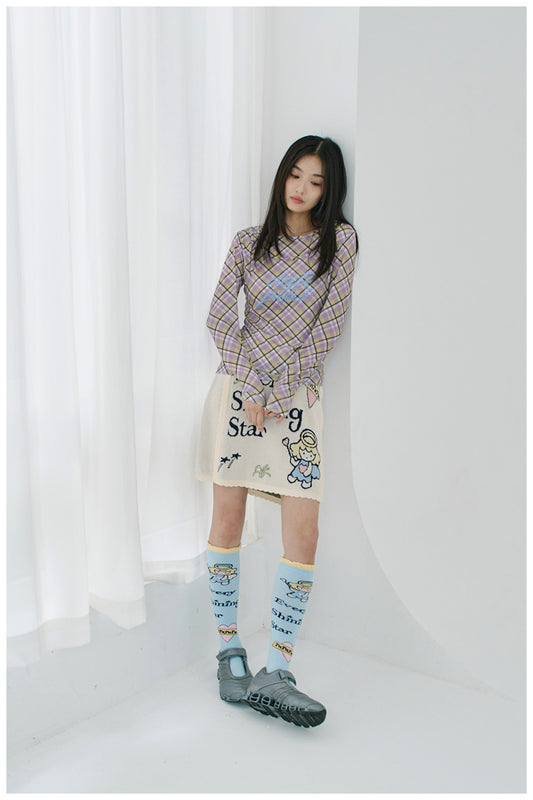 Harajuku Skirt Beige Skirt A-line Skirt Cute Angel Print Skirt