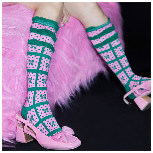 Harajuku Socks Ruffle Plaid Socks Bow Socks Stacked 3 Pairs Socks