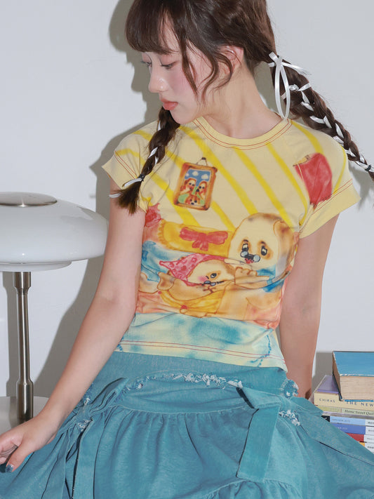 Tntntutu - Decora Kei Yellow Dog Home T-Shirt