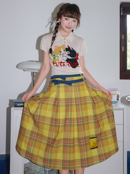 Tntntutu - Decora Kei Yellow Plaid Pleated Skirt
