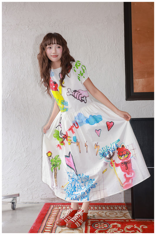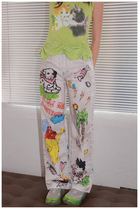 Tntntutu - Decora Kei White Graffiti Denim Pants