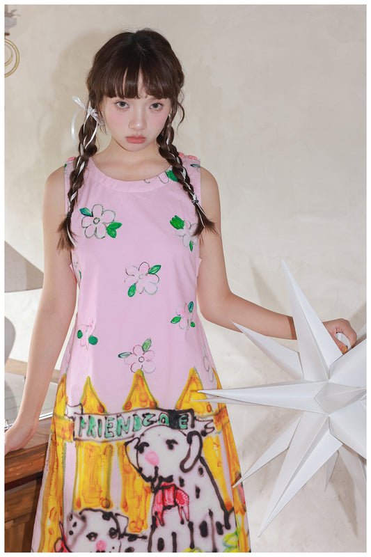 tntntutu - Dopamine Pink Lamb Print Hoodie Kawaii Hand-Drawn Cute Pullover