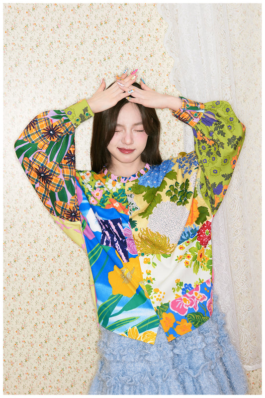 tntntutu - Patchwork Floral Bubble Midi Skirt