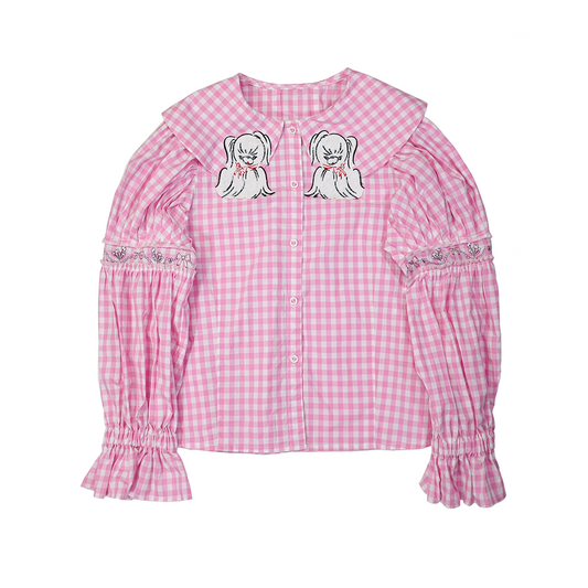 Meugler Decora Kei Shirt Pink Pearl Shirt Puff Sleeves Shirt