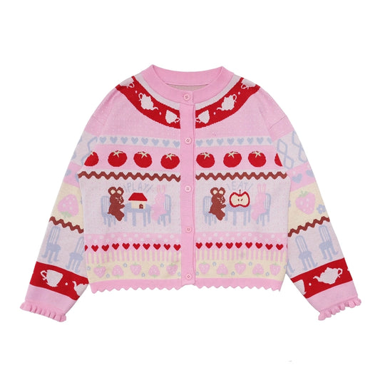 MeowMeow Bug - Kawaii Pink Panda Knit Cardigan Cropped Soft Slim Fit