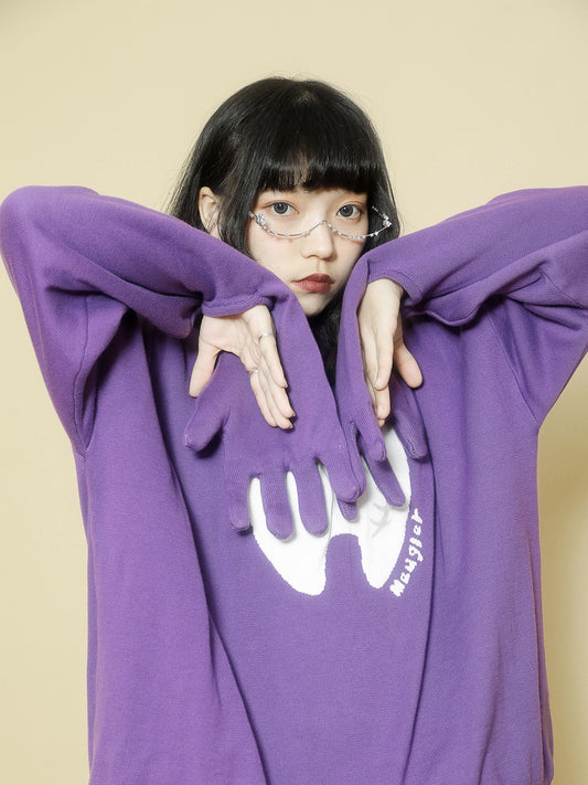 Meugler Magic Teeth Gloves Double-Layered Hole Purple Sweater - Original Hoodie