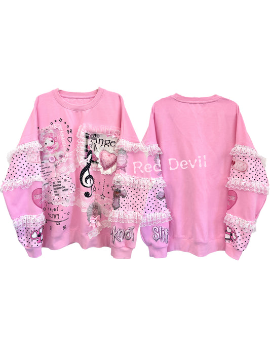 Red Devil Sweatshirt Decora Kei Sweatshirt Pink Lace Patchwork Plush Size Sweatshirt