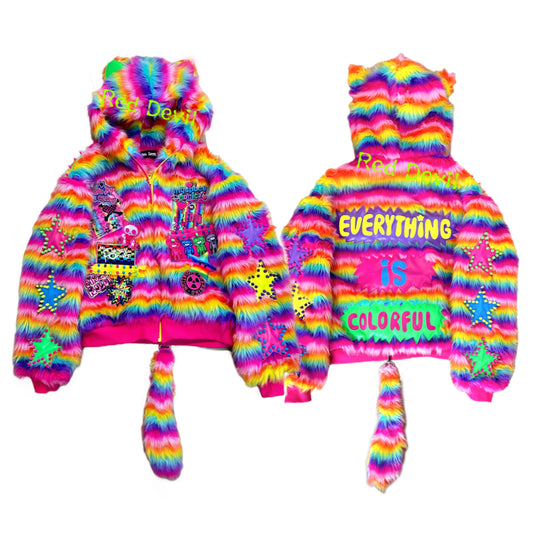 RedDevil Decora Coat Original Design Subculture Coat Colorful Furry Cotton Coat