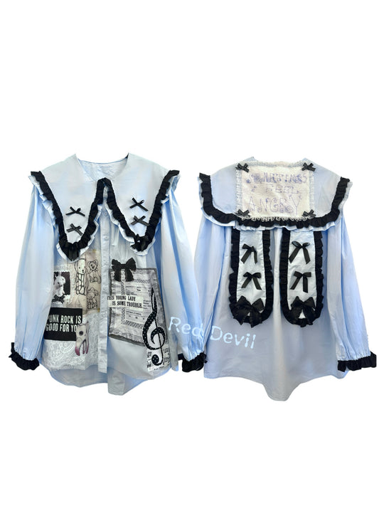 RedDevil β Baby Blue Doll Collar Oversized Shirt
