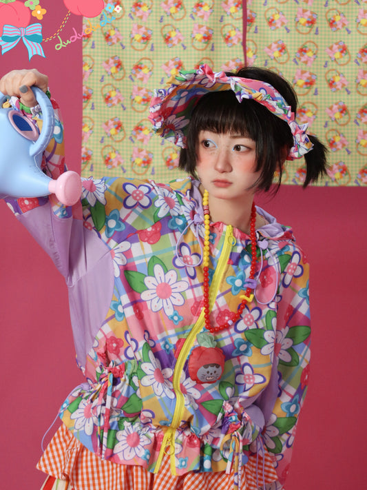 Decora Kei Zip-Up Jacket β Floral Mesh Panels