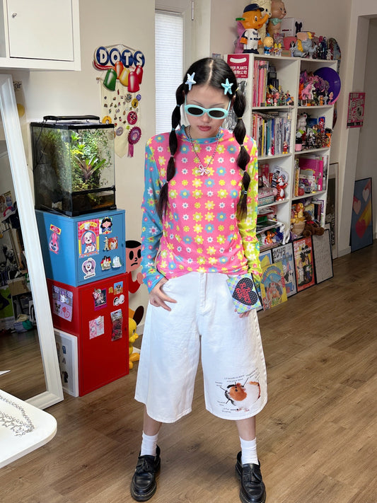Discover a vibrant selection of tops that embody the playful spirit of Decora Kei and Harajuku fashion. From colorful graphic tees to stylish blouses, our tops are designed to make a statement. Perfect for layering or wearing on their own, each piece adds a unique touch to your wardrobe. Browse our collection and find the perfect top to express your individual style!