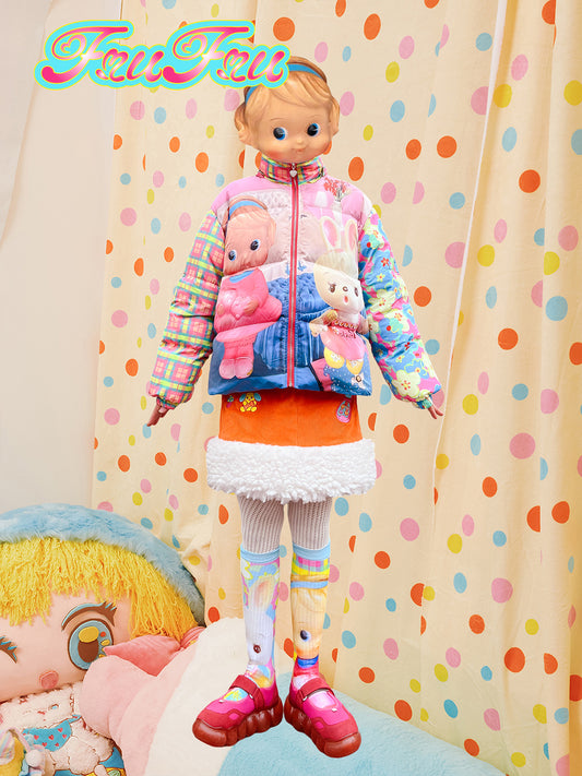 Frufru Colorful Printed Puffer Jacket | 90% White Duck Down Winter Coat