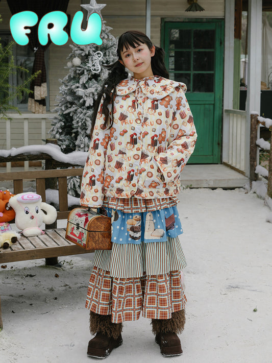 frufru - Kawaii Puffer Jacket Cute Print Hooded Down Coat