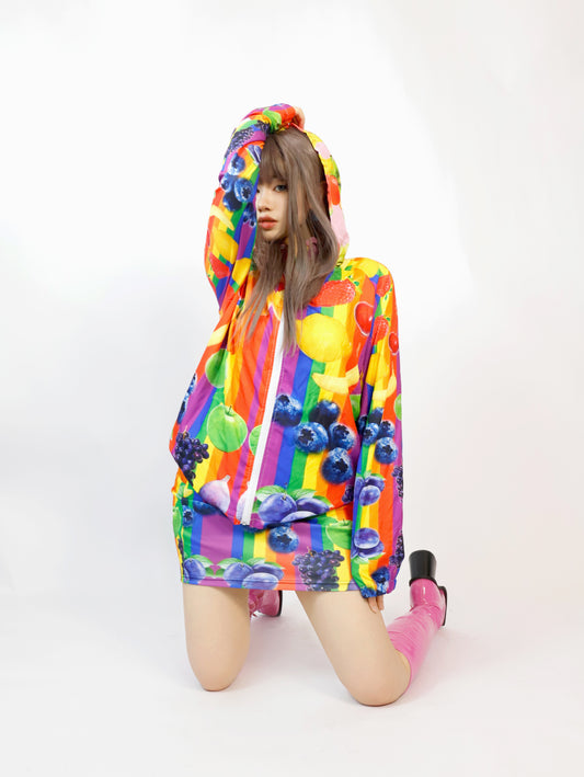 Harajuku Jacket Fruits Print Jacket Summer Wear Jacket Hooded Sun Shirt