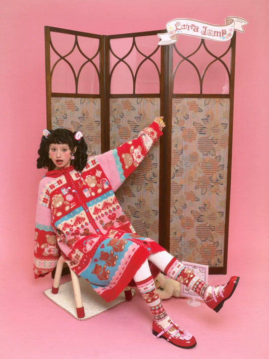 Harajuku Hoodie Red Tea Bear Hoodie Cardigan Decora Kei Hoodie