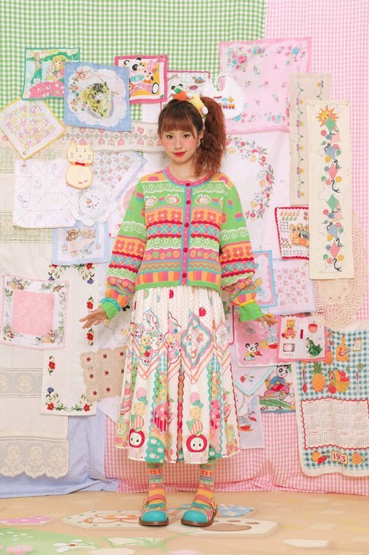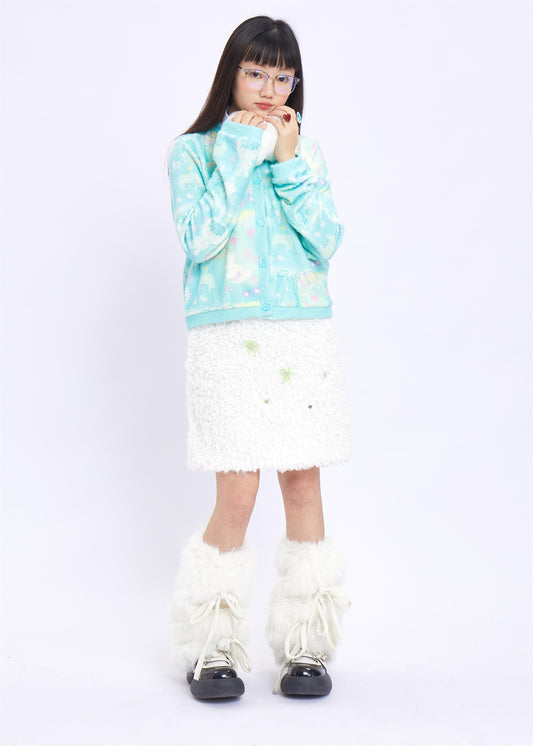 Harajuku Cardigan Cartoon Prints Cardigan Mint Green Cardigan Loose Knit Cardigan