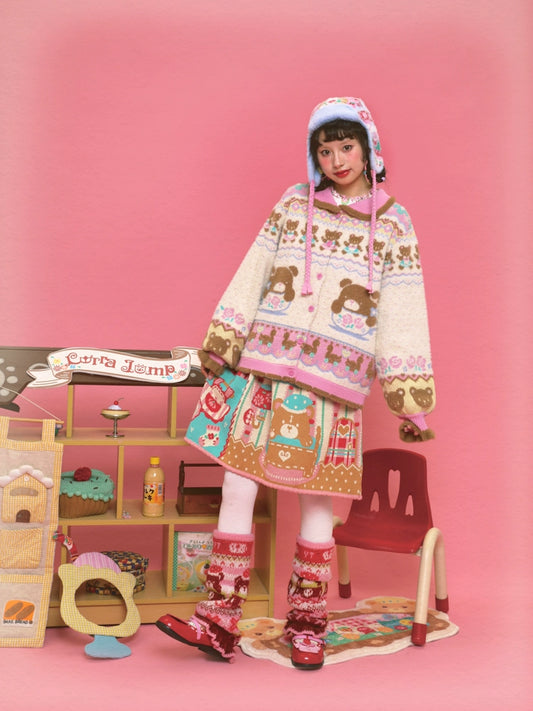 Harajuku Cardigan Teacup Bear Fair Isle Cardigan Faux Mink Trim Cardigan Ivory Knit Cardigan