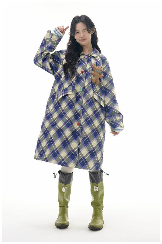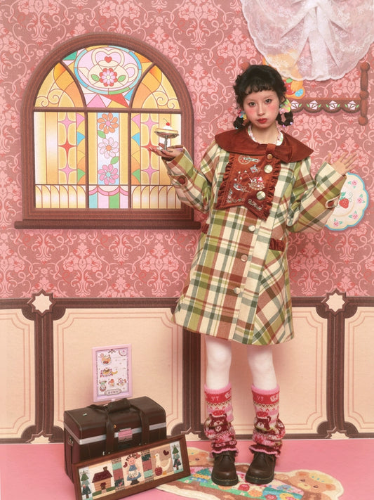 Harajuku Coat Green Plaid Woolen Coat Decora Kei Coat
