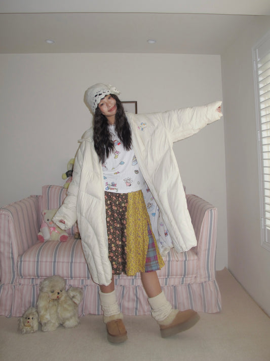 Harajuku Jacket Winter White Jacket Embroidered Jacket Long Down Jacket