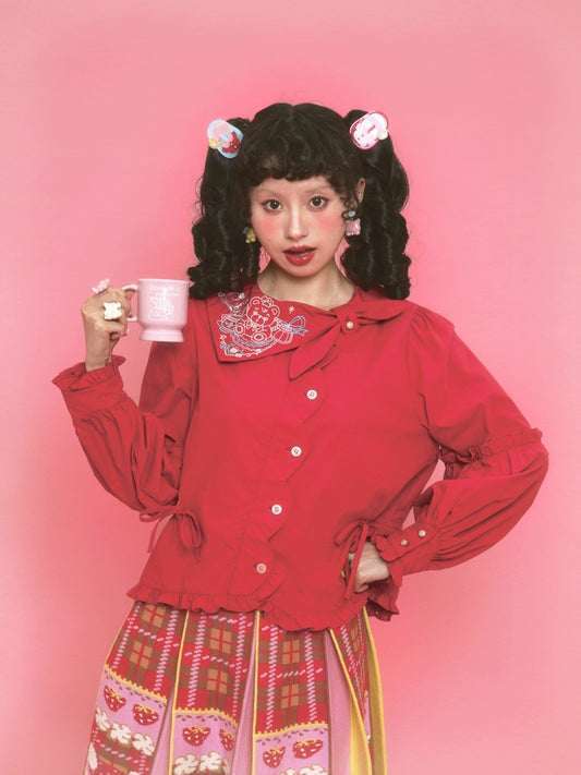 Harajuku Shirt Embroidery Shirt Decora Kei Shirt Versatile Shirt