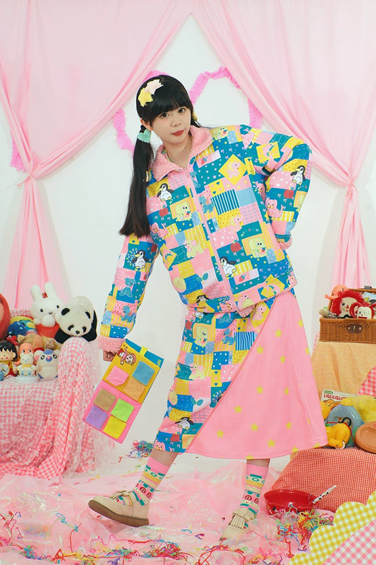 Harajuku Jacket Print Reversible Jacket Decora Fashion Jacket