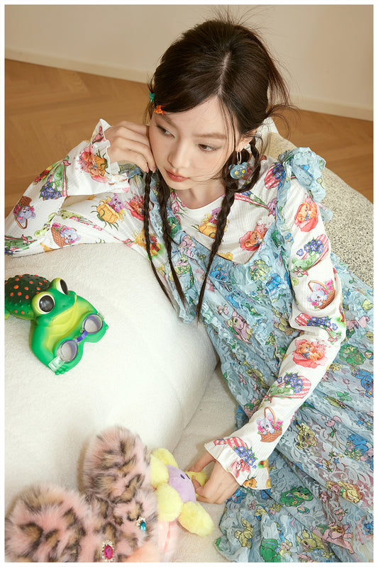 Harajuku Shirt Green Shirt Strawberry Shirt Long Sleeve Shirt Animal Print Shirt