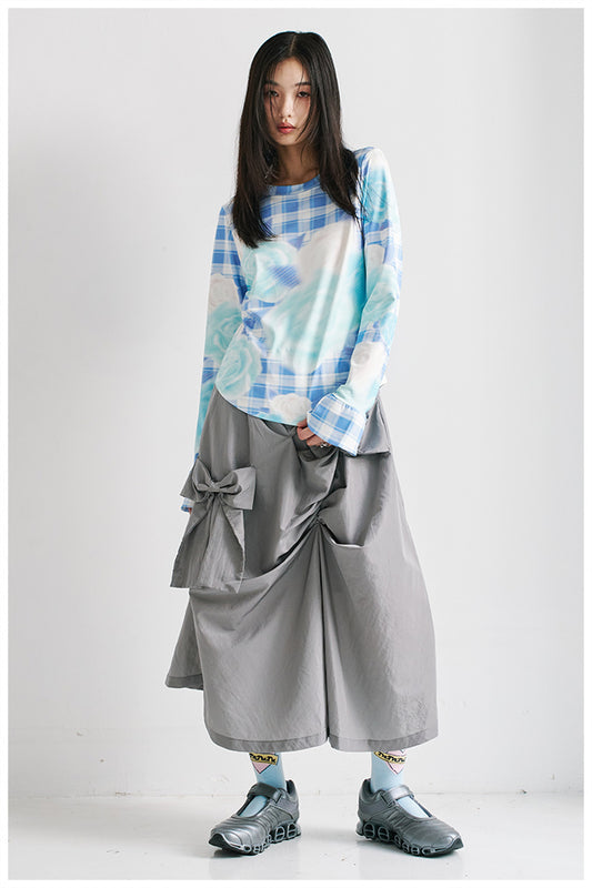 Harajuku Shirt Blue Shirt Flared Sleeve Shirt Floral Print Shirt Sun Protection Shirt