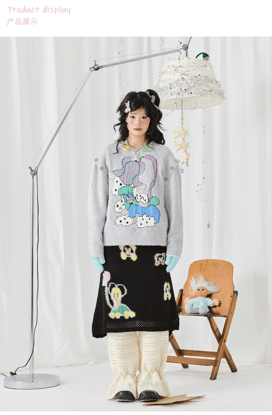 Harajuku Sweater Kitten Knit Sweater Decora Fashion Sweater