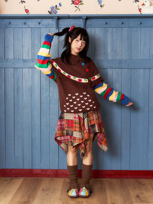 Harajuku Sweater Fruits Chocolate Strawberry Tassel Cape Brown Winter Sweater