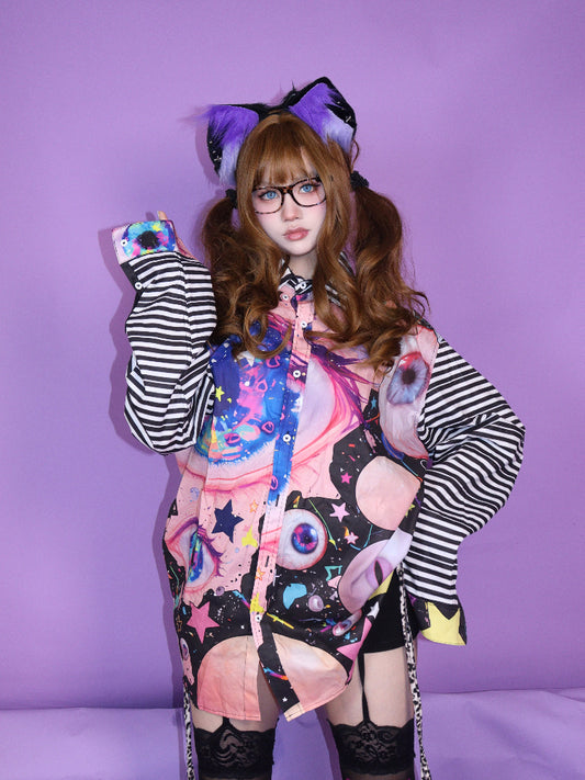 LEERROO Colorful Shirt Eyes Earth Y2K Shirt Loose Shirt