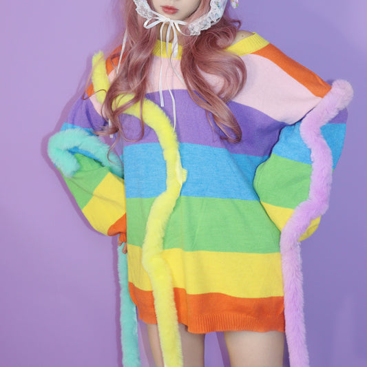 Leerroo Decora Rainbow Sweater Colorful Harajuku Sweater