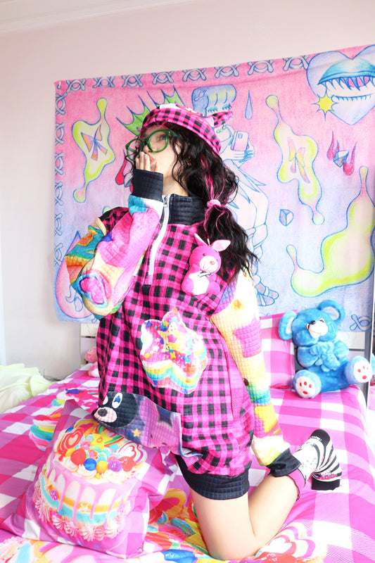 Leerroo Decora Fashion Jacket Colorful Harajuku Hoodie Bright Zipper Jacket