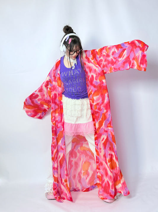 LEERROO Summer Sheer Print Jacket | Harajuku Colorful Chiffon Sun Coat