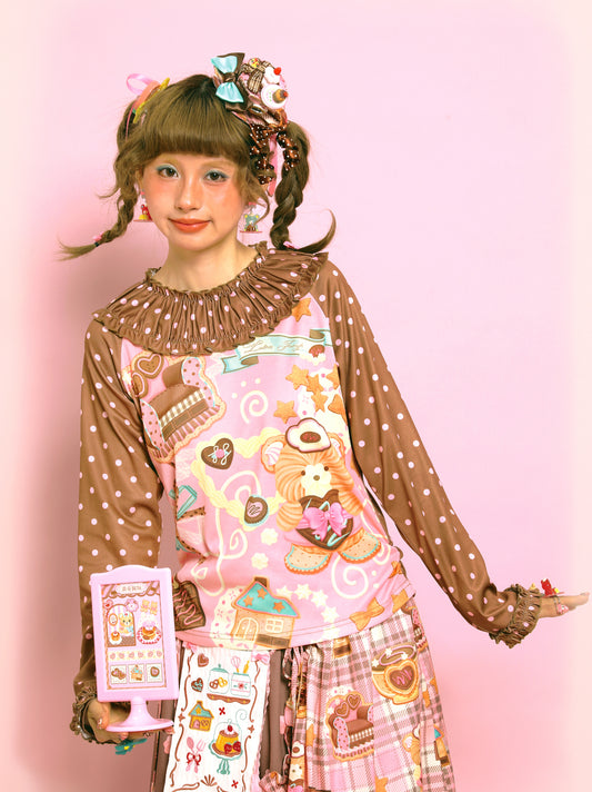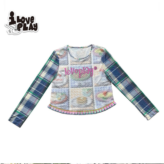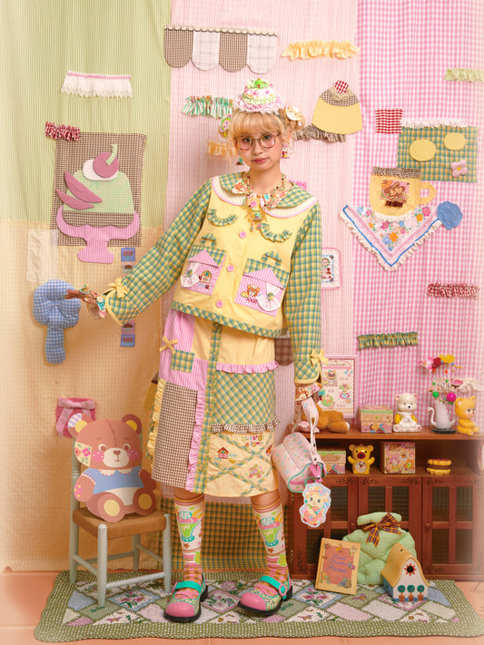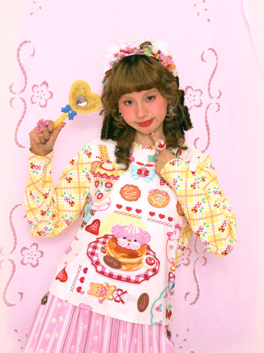 Lutra Jump - Kawaii Long Sleeve Top Yellow Plaid Dessert Base Shirt