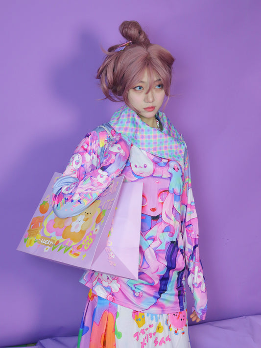 Discover a vibrant selection of tops that embody the playful spirit of Decora Kei and Harajuku fashion. From colorful graphic tees to stylish blouses, our tops are designed to make a statement. Perfect for layering or wearing on their own, each piece adds a unique touch to your wardrobe. Browse our collection and find the perfect top to express your individual style!