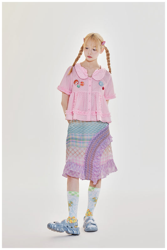 Decora Kei T-shirt – Vintage Plaid Round Neck