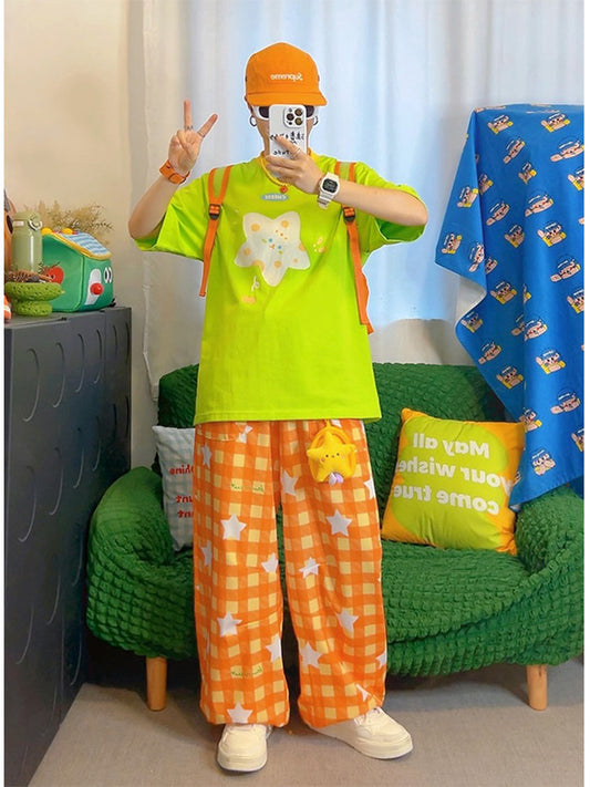 KURIOSITAET - Decora Kei Green Star Print Oversized Tee