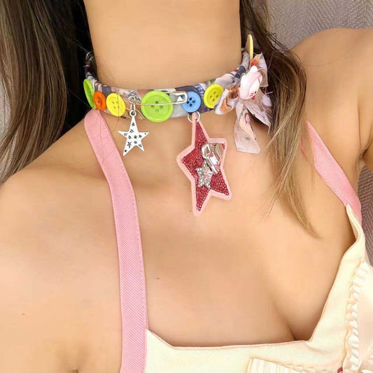 Hidden – Y2K Decora Choker with Star Charms & Button Puppy Pendant