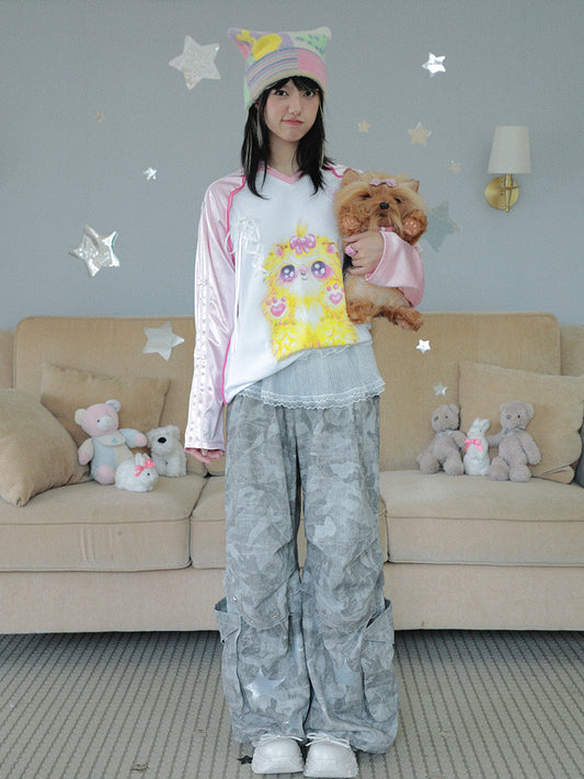 tntntutu Y2K Colorblock Heart Mesh Jersey Top – Sporty Kawaii Harajuku T-Shirt